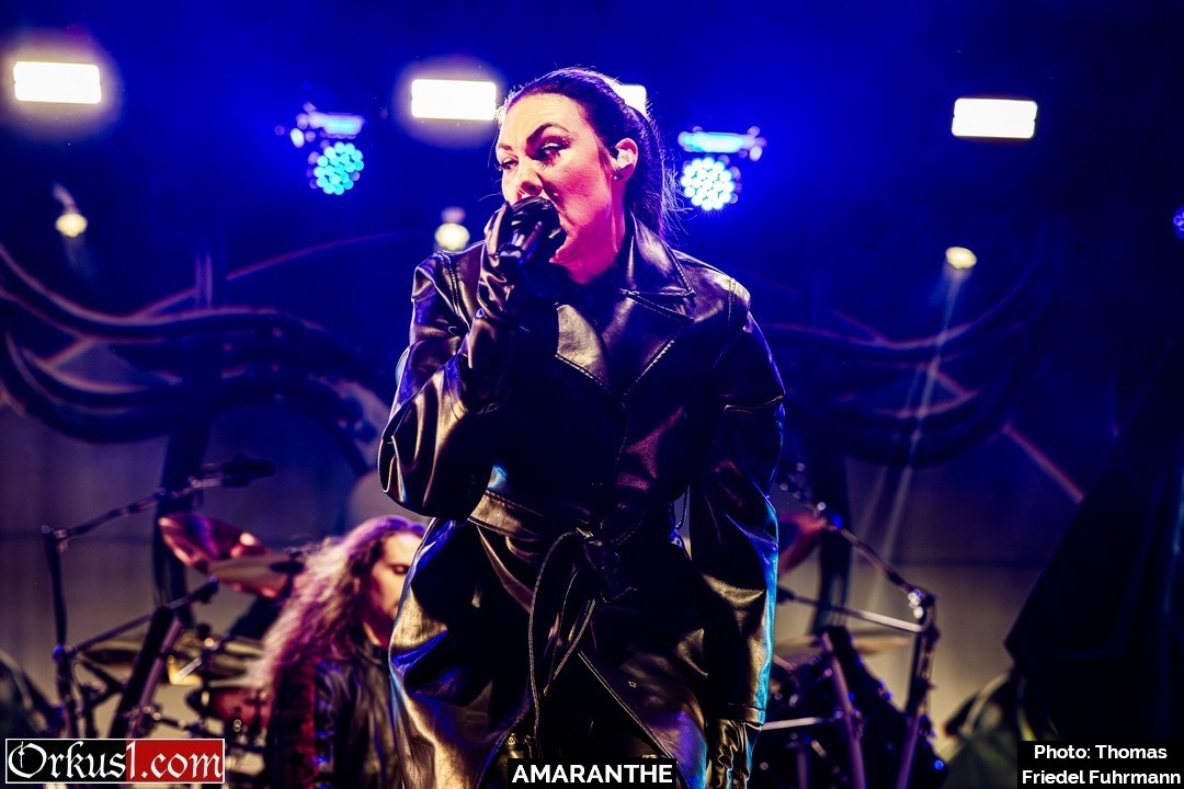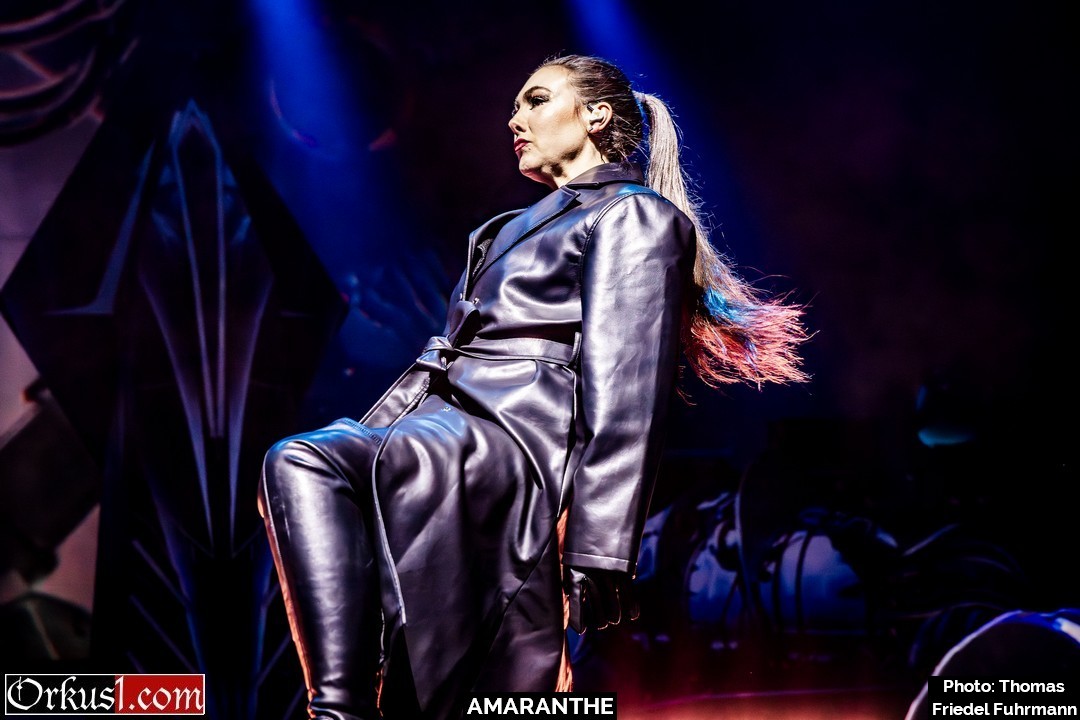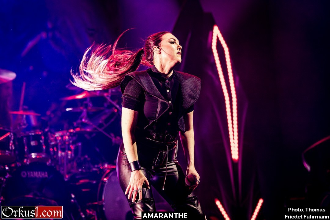 Kaum hatten Epica die Bühne verlassen, veränderte sich die Atmosphäre schlagartig. Die orchestrale Dunkelheit wich grellen Lichtern, elektronischen Beats und einer Energie, die sofort nach vorne ging. Mit „Fearless“ eröffneten Amaranthe ihr Set – ein Song, der wie ein Energieschock durch die Arena fuhr. Danach folgte „Viral“, dessen moderner Metal-Sound sofort Bewegung in die Menge brachte. „Digital World“ und „Damnation Flame“ legten anschließend eine massive Gitarrenwalze nach. Mit „Maximize“ und „Strong“ schaltete die Band endgültig auf Party-Modus. Die Refrains wurden lautstark mitgesungen, während Elize Ryd die Bühne mit einer Mischung aus Energie und Charisma dominierte. „Crystalline“ ließ die Halle kurz durchatmen, bevor „Chaos Theory“ wieder ordentlich Druck machte.