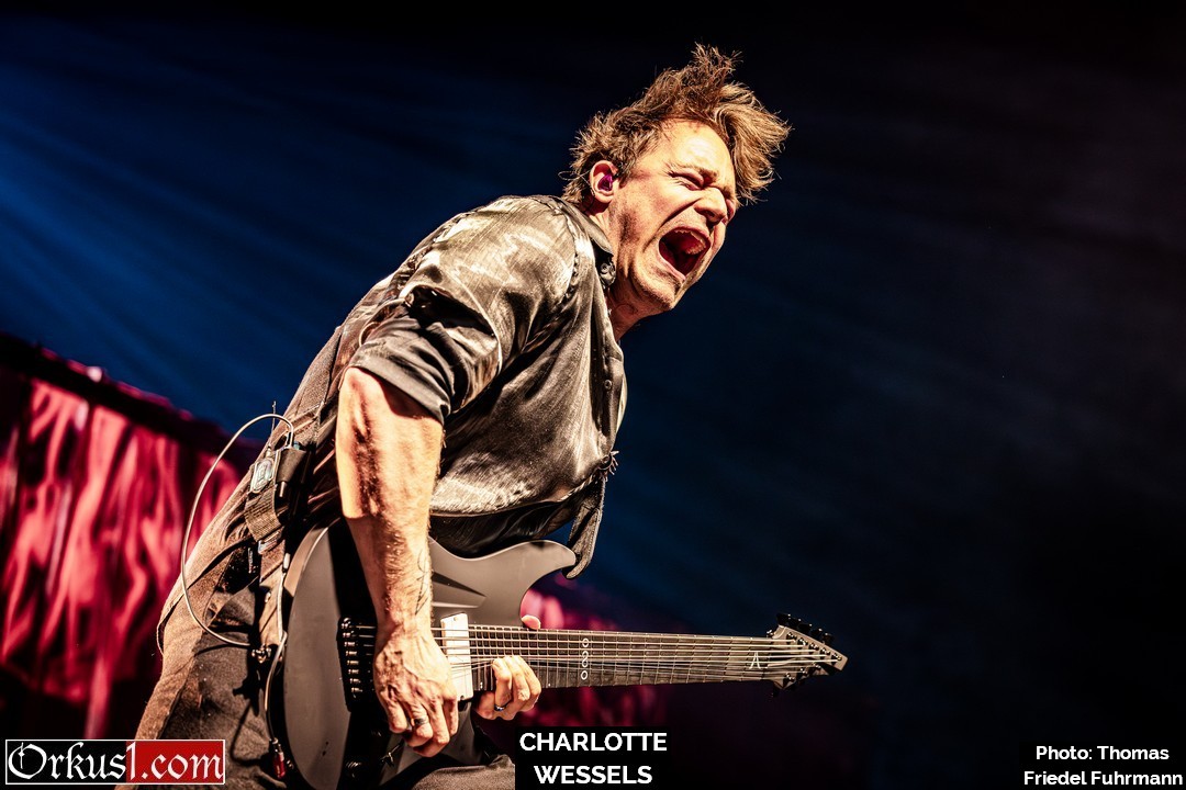 Dann kam der Moment, auf den viele gewartet hatten. Als die ersten Töne von „Cry for the Moon“ erklangen, ging ein hörbares Raunen durch die Halle. Sekunden später sang die Inselpark Arena jede Zeile mit. Die Gitarren walzten durch die Arena, während Simone Simons im weißen Bühnenlicht die Bühne mit beeindruckender Präsenz dominierte und die ersten Reihen jede Zeile mitsangen. Mit „The Last Crusade“ wurde es noch einmal episch. Orchestrale Wucht und ein Publikum, das komplett im Bann dieser Klangkathedrale stand. Den Abschluss bildete schließlich „Beyond the Matrix“ – ein Finale, das noch einmal alles vereinte: Druck, Melodie und epische Dramatik. Ein orchestraler Metal-Sturm, der die Inselpark Arena komplett im Griff hatte. Doch der Abend war noch nicht vorbei.
