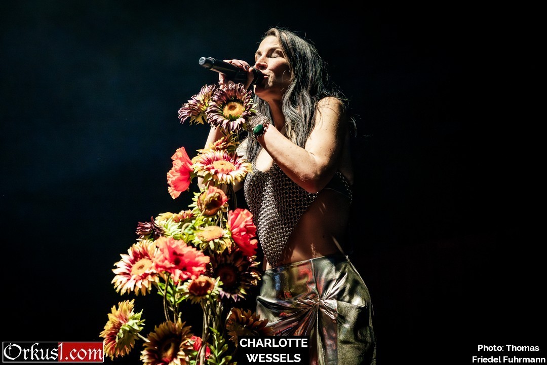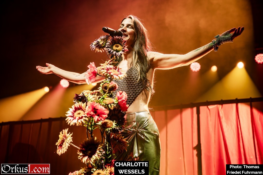 Bevor dieser Doppelsturm losbrechen konnte, gehörte die Bühne jedoch zunächst einer Künstlerin, die vielen Fans bestens bekannt ist. Charlotte Wessels, lange Zeit Frontfrau der Symphonic-Metal-Band Delain, hat sich mit ihrem aktuellen Projekt The Obsession eine eigene musikalische Welt erschaffen. Ihre Songs bewegen sich zwischen dunklem Pop, atmosphärischem Rock und cineastischem Metal. Persönlich, emotional, manchmal zerbrechlich und oft mit einer leisen Melancholie versehen – dann wieder überraschend kraftvoll.