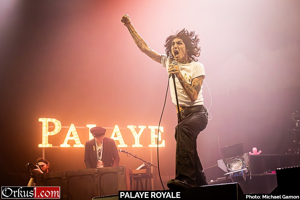 The second support act of the evening was Palaye Royale – three brothers from Las Vegas who describe themselves as a “fashion art rock” band. Stylistically located between glam rock, alternative and punk, they are not only characterized by their music, but also by their extroverted appearance. Fittingly, their V-shaped band name, illuminated with light bulbs, framed the center of the stage. The atmosphere had risen considerably in the meantime, and the US-Americans were received accordingly loudly. They took the stage by storm with “Mister Devil”. Guitarist Sebastian Danzig immediately sought to get close to the fans, climbed onto the speakers in front of the stage and played in direct contact with the audience. “Death or Glory” followed – a song that was strongly reminiscent of Måneskin in style and was celebrated by the audience jumping. The only downer: the sound. Remington Leith’s grating voice in particular was unfortunately mixed too quietly and didn’t come across with the full intensity that we’re used to hearing from him.