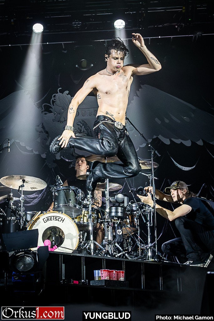 “Yeah! Make some noise. Are you ready to rock with me? I want fucking chaos! Are you ready to go crazy?” Yungblud asked the fans to take each other on their shoulders. More and more followed his call – but that wasn’t enough for him. He wanted even more. Soon rows of young women were sitting on the shoulders of their loved ones, and “Low Life” turned into an exuberant spectacle. The song itself is characterized by Eminem-style chanting, snotty, fast and full of attitude. Flames shot up into the air while Dom shook his ass cheekily and knew exactly what effect he was creating with every move he made. “You’re fucking amazing!”