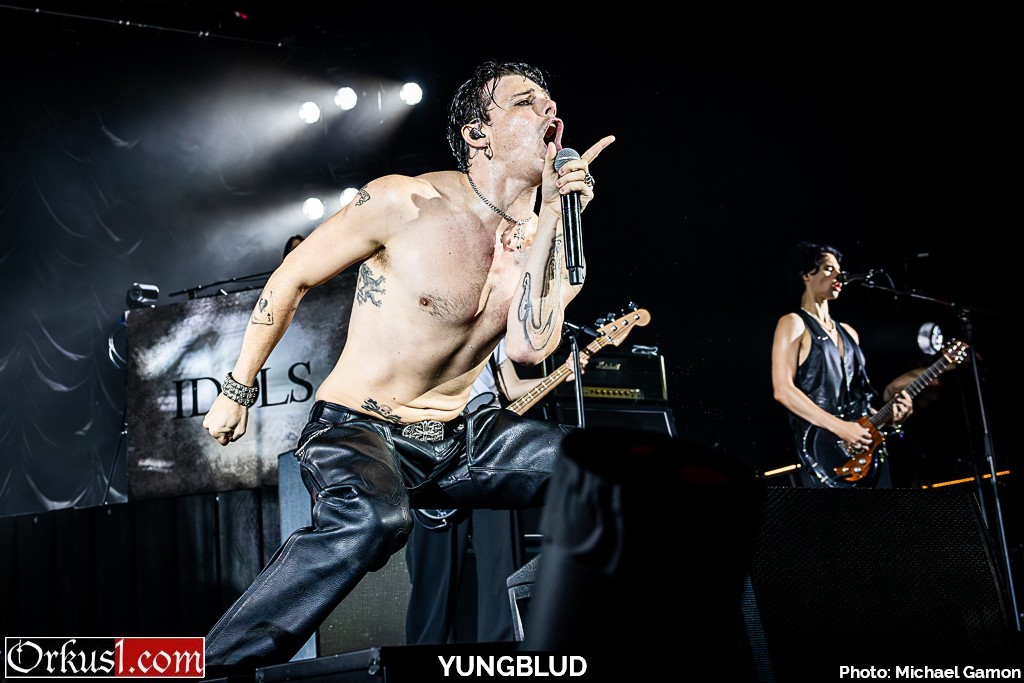 “Holy shit, Düsseldorf – you look beautiful! Are you motherfuckers ready? Go! Hey, hey…” With this call, the Brit started “The Funeral” – and the party was finally on. The whole hall was dancing and Yungblud proved to be an absolute crowd puller: Although the stage was full of musicians, people’s eyes inevitably kept wandering to this exceptional artist. Musically, the hybrid song combines driving indie rock with punk pop – including rousing choruses that are immediately catchy and unfold their full power live. And in terms of content, it is far more than just a dance hit – it plays with one’s own funeral as a metaphor for self-doubt, new beginnings and the decision to celebrate life despite all the darkness. This was followed by “Idols Pt. I” – and how Yungblud used his body! He swayed his hips skillfully, stroked the microphone stand with a delicate hand, raised his arms in the air and exchanged hot glances. “It’s good to be back in Germany. Are you motherfuckers going crazy? I’m Yungblud and I’m fucking crazy!”, he shouted into the microphone and the crowd jumped up with him. Together they immersed themselves in this very special, intoxicating world.