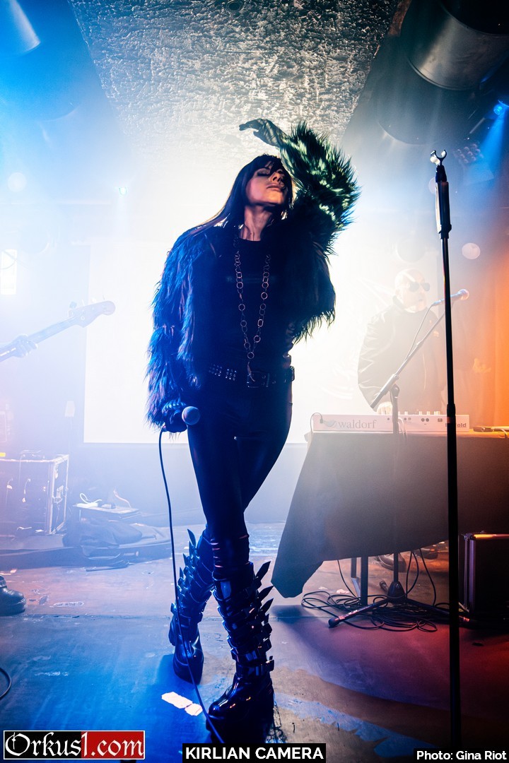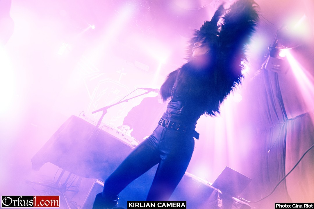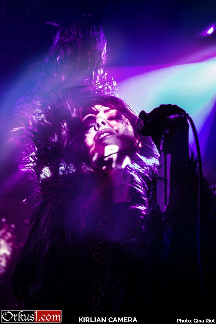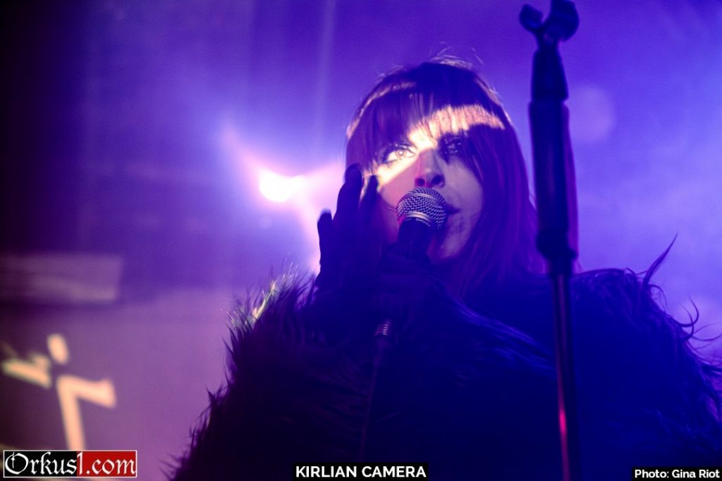 Kirlian Camera verzauberten ihr Publikum mit eindringlicher Klangkulisse. Geblendet von Schönheit in Stimmgewalt und Eleganz erlagen die Besucher den Schwingungen der Performance. Und auch auf der Bühne wurde breit gelächelt, miteinander gescherzt und gelacht. So teilten sich Sängerin und Bassistin Irene zumal das Mikro, Elene spielte kichernd mit deren Haar oder die drei Musiker scherzten in ihrer Muttersprache miteinander. Schnell wurde klar, dass die Künstler an diesem Abend ebenso viel Freude empfanden wie das Publikum. Mit Coversongs wie „Smells Like Teen Spirit“ von Nirvana oder „Too Many Friends“ von Placebo hüllten Kirlian Camera jene Nummern anderer Musiker in ihr eigenes gewohntes Klanggewand. Mit ihrer Interpretation des Ultravox-Coversongs „Hymn“ beendeten sie ihr Set und verließen die Bühne. Jedoch nicht vollständig, denn noch bevor Angelo verschwinden konnte, wurden Zugabe-Rufe laut und der Musiker nahm mittels Taschenlampenflackern Kontakt zur Technik auf. Die Fans mussten nicht lange warten und ihr Applaus wurde mit weiteren beliebten Songs belohnt. „Odyssey Europa“ bildete den krönenden Abschluss eines wundervollen Konzertes.
