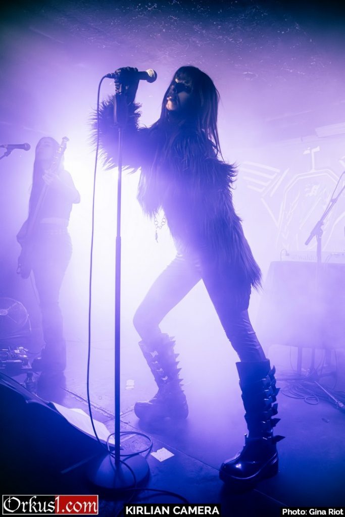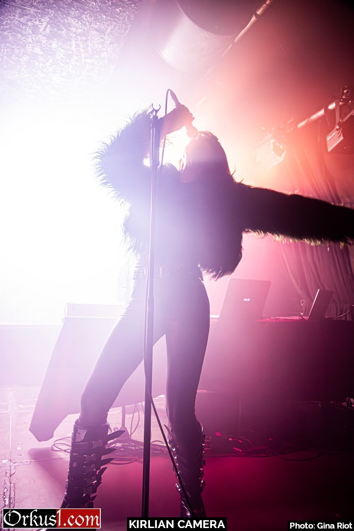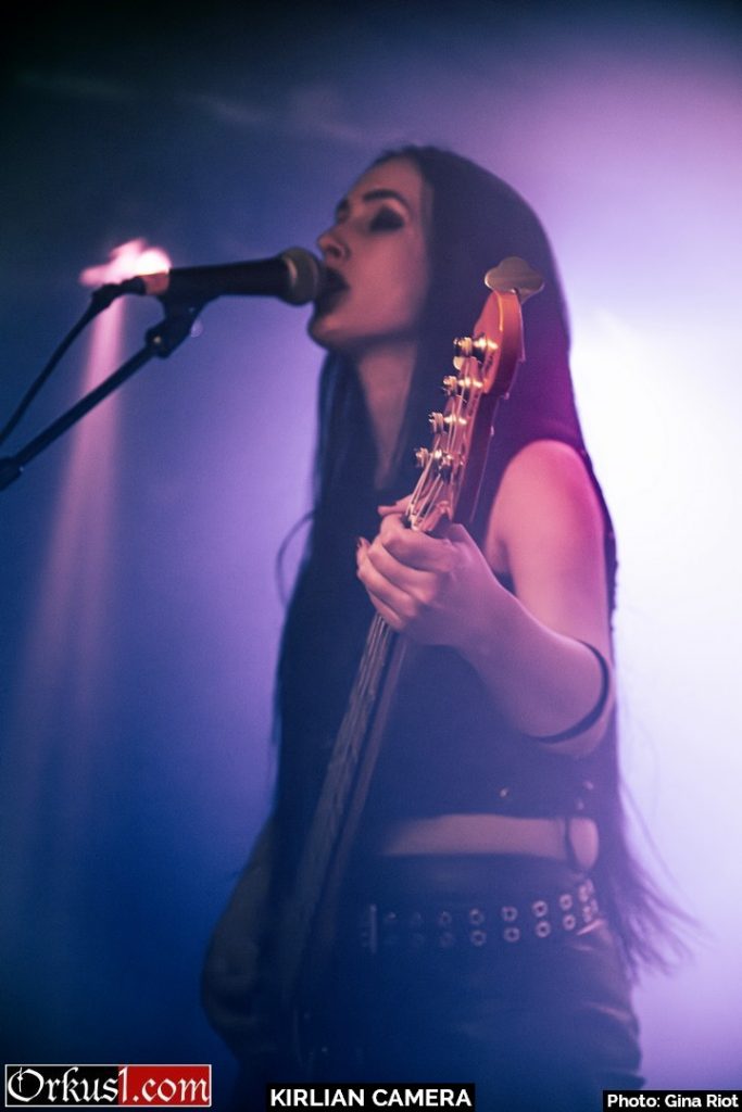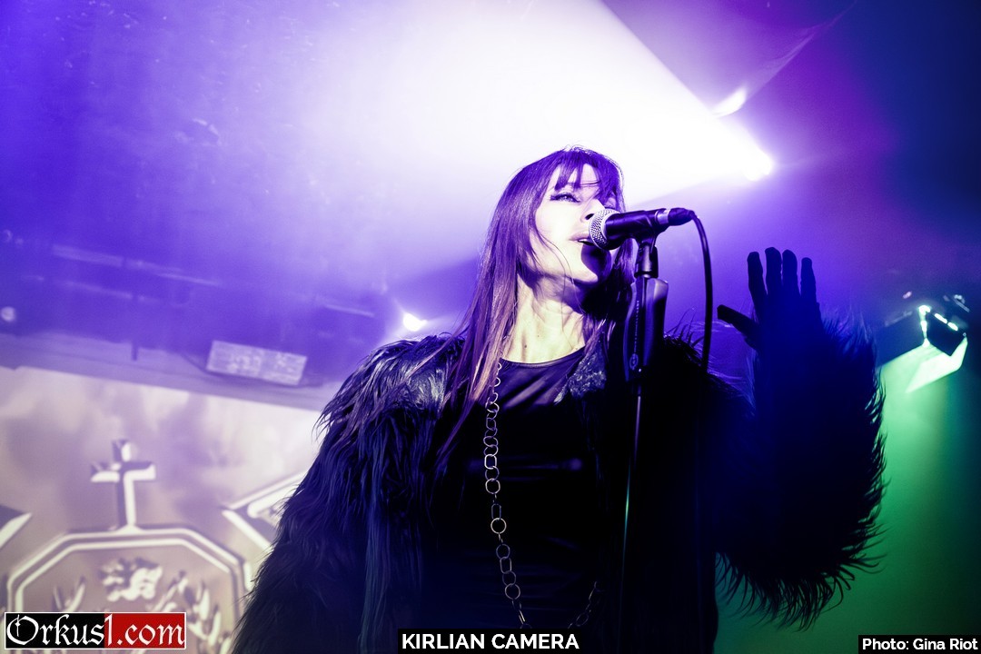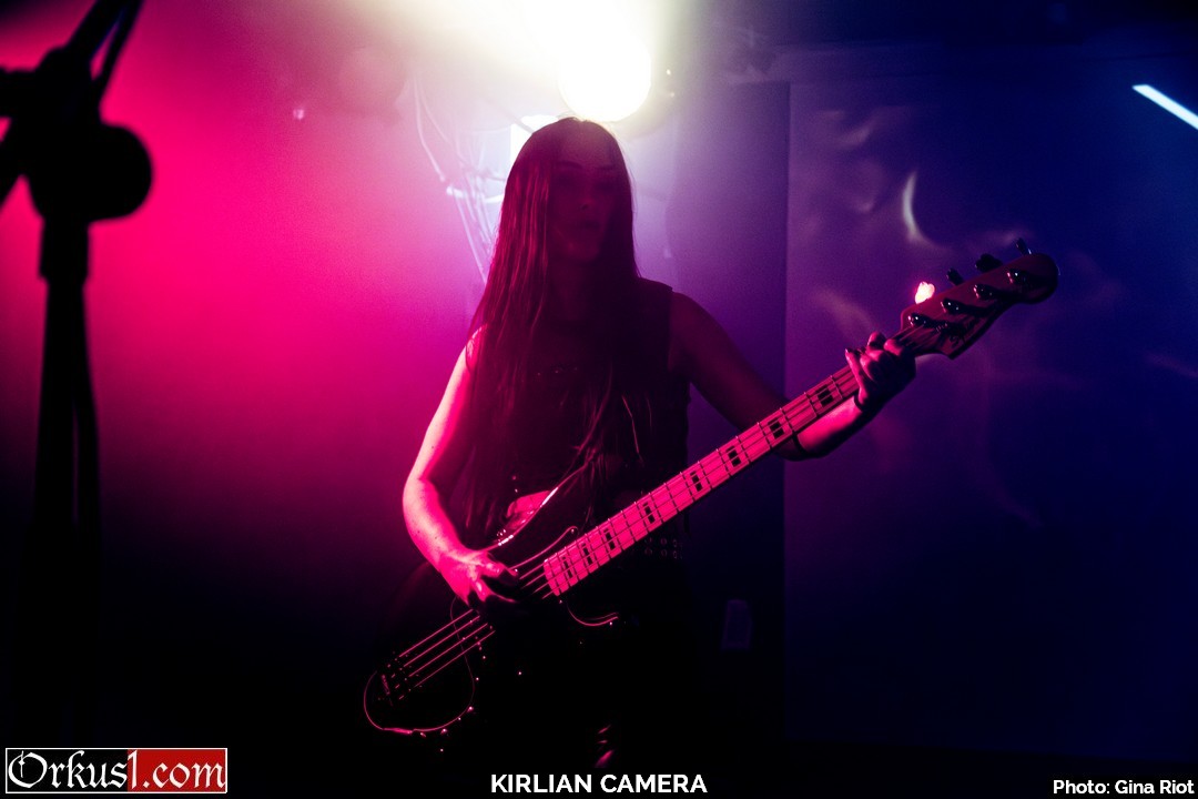 Kirlian Camera verzauberten ihr Publikum mit eindringlicher Klangkulisse. Geblendet von Schönheit in Stimmgewalt und Eleganz erlagen die Besucher den Schwingungen der Performance. Und auch auf der Bühne wurde breit gelächelt, miteinander gescherzt und gelacht. So teilten sich Sängerin und Bassistin Irene zumal das Mikro, Elene spielte kichernd mit deren Haar oder die drei Musiker scherzten in ihrer Muttersprache miteinander. Schnell wurde klar, dass die Künstler an diesem Abend ebenso viel Freude empfanden wie das Publikum. Mit Coversongs wie „Smells Like Teen Spirit“ von Nirvana oder „Too Many Friends“ von Placebo hüllten Kirlian Camera jene Nummern anderer Musiker in ihr eigenes gewohntes Klanggewand. Mit ihrer Interpretation des Ultravox-Coversongs „Hymn“ beendeten sie ihr Set und verließen die Bühne. Jedoch nicht vollständig, denn noch bevor Angelo verschwinden konnte, wurden Zugabe-Rufe laut und der Musiker nahm mittels Taschenlampenflackern Kontakt zur Technik auf. Die Fans mussten nicht lange warten und ihr Applaus wurde mit weiteren beliebten Songs belohnt. „Odyssey Europa“ bildete den krönenden Abschluss eines wundervollen Konzertes.