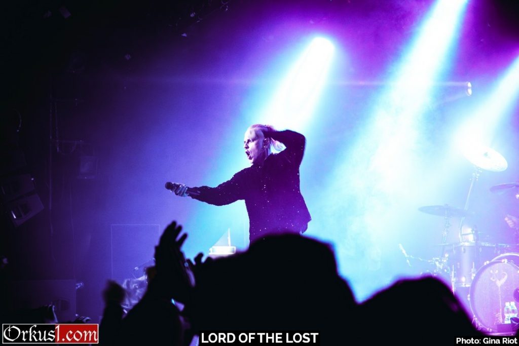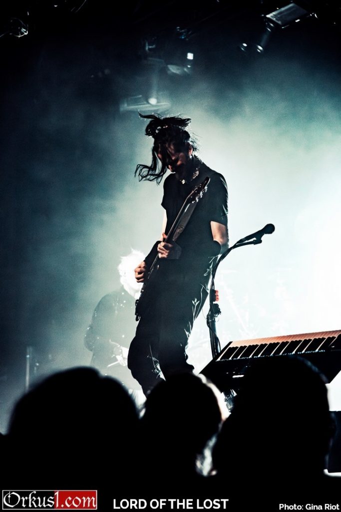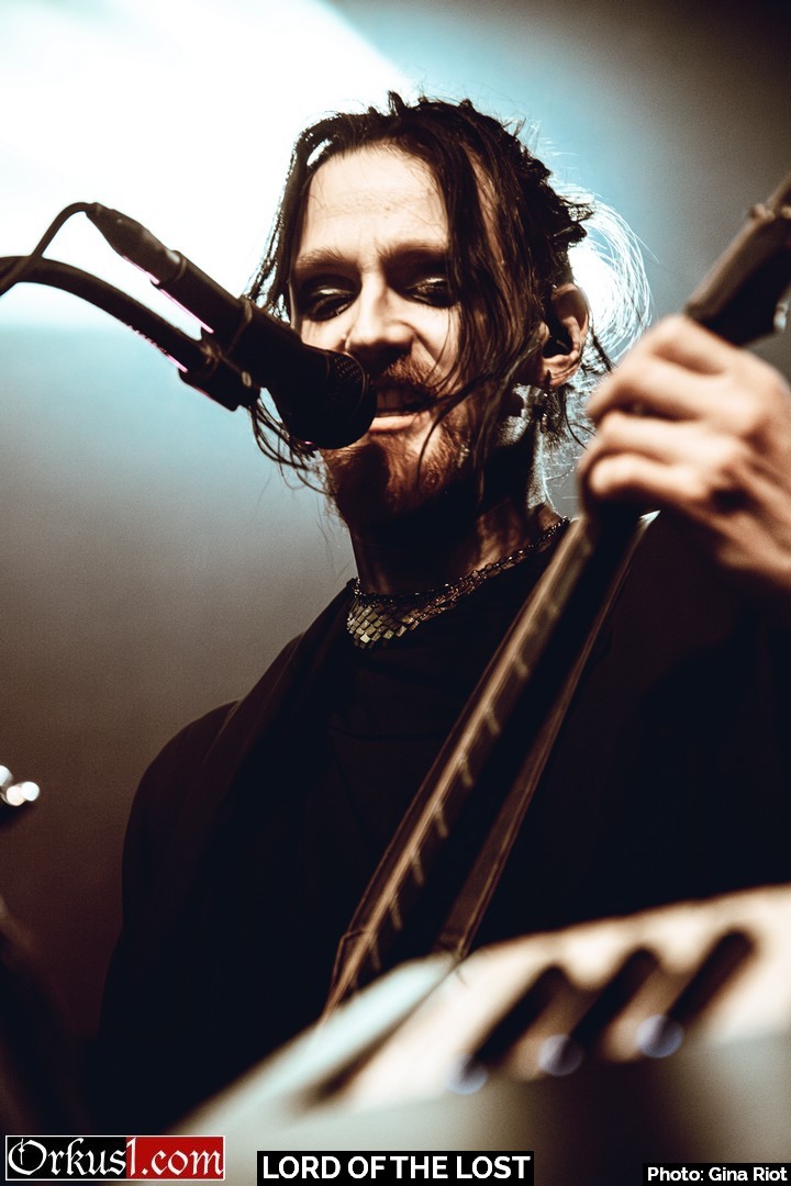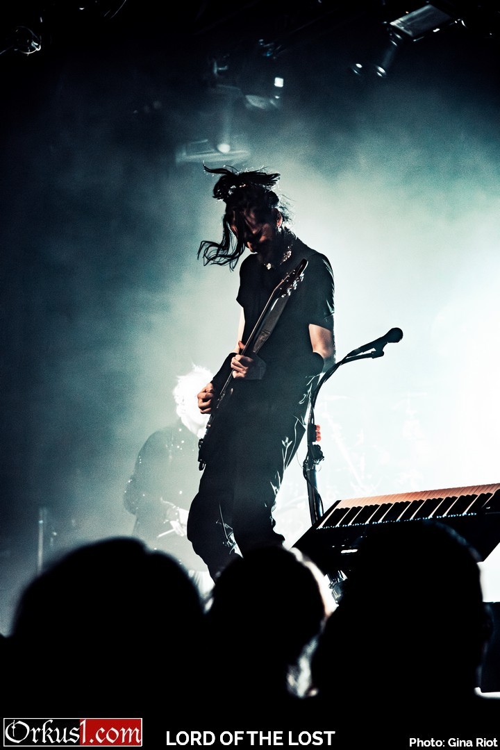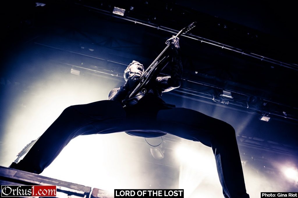 Mystisch und dunkel eröffneten Lord Of The Lost ihr Set mit „Kill The Lights“ – Der Name war Programm. Wenngleich dieser Auftakt für Fotografen nicht das Optimum darstellt, so muss man die Entscheidung des Lichttechniker nur anerkennend goutieren, denn der thematisch passende Kontrast zwischen Finsternis, violetten und blauen Akzenten und weißem Flashlight während Chris Harms „Kill. The. Lights.“ ins Mikrofon grölte, sind ebenjene Gesamtkonzepte, die eine Liveshow abrunden. Mit „My Funeral“ folgte der zweite Song des neuesten Albums „OPVS NOIR Vol. 3“. In den ersten Reihen drängten sich die Fans zusammen. Der Sänger begrüßte das Publikum auf Deutsch, Englisch und verlautbarte seine Annahme, es gäbe doch ausreichend Zuschauer aus dem Ausland, weshalb er die Show auf Englisch moderieren würde. Auf die Frage hin, wie viele Menschen von außerhalb der deutschsprachigen Region denn angereist wären, hörte man beinahe die Grillen zirpen. Chris gab sich schmunzelnd geschlagen.