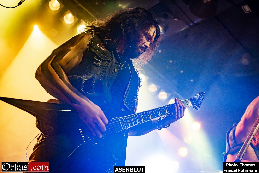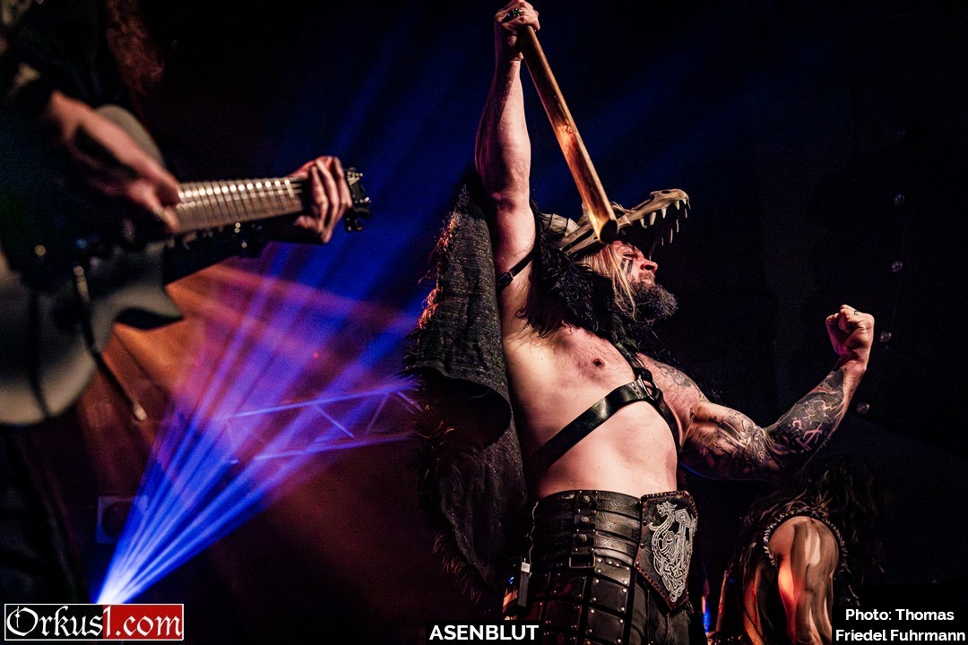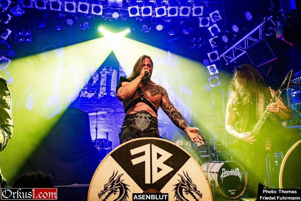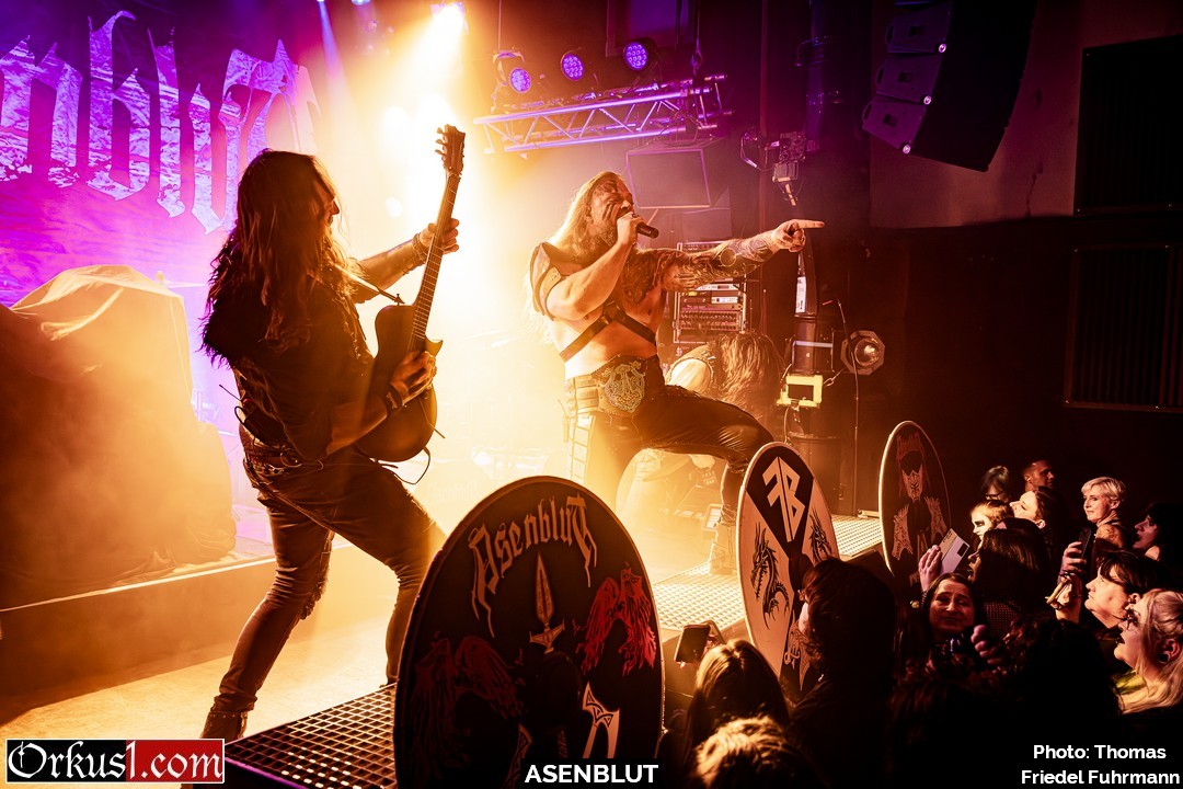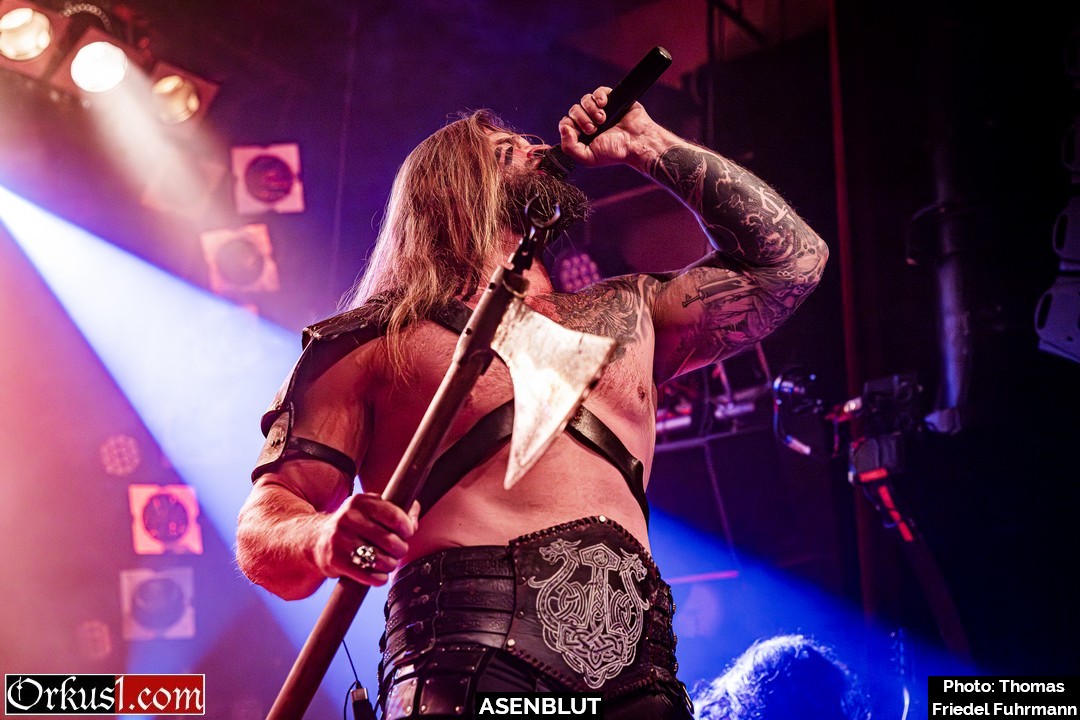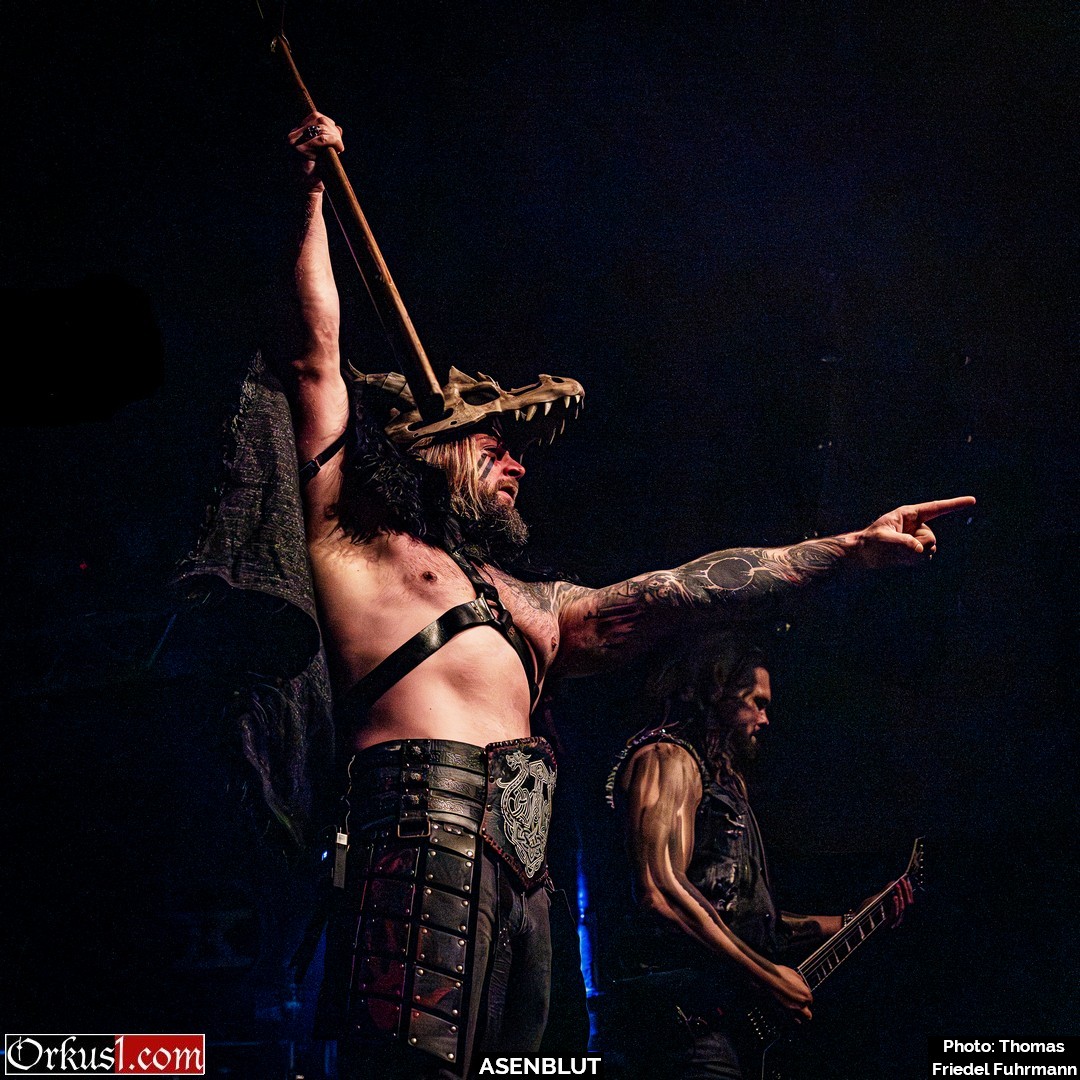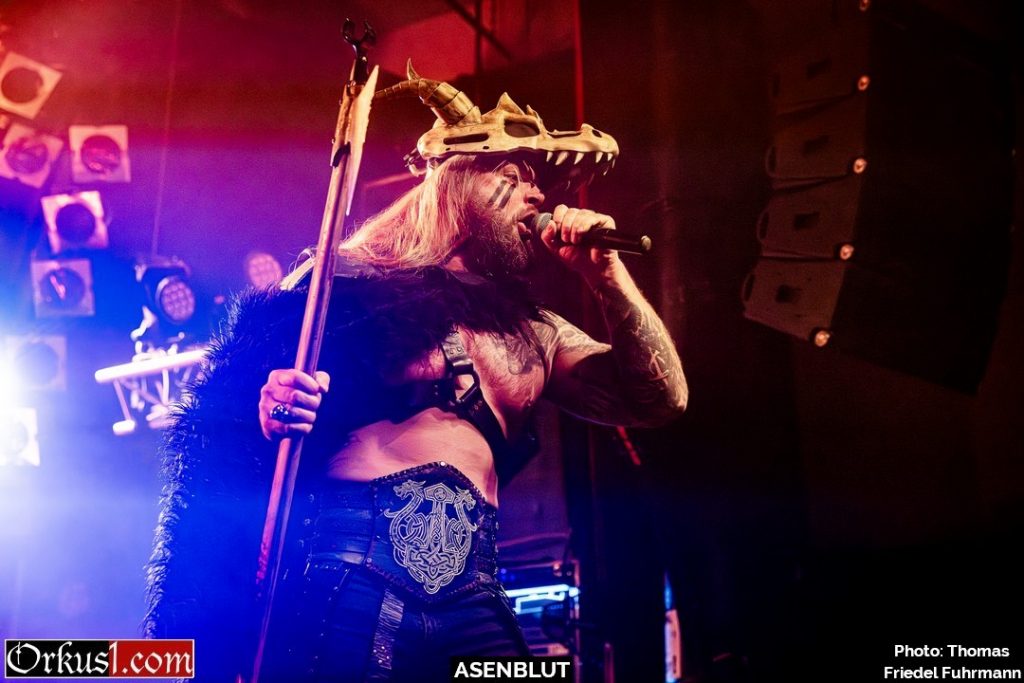 Asenblut eröffnen den Abend wie ein Rammbock – nicht als Beiwerk, sondern wie eine Vorhut. Mit „Das Ende der Götter“ setzen sie sofort die Tonlage: schwer, episch, mit jener Mischung aus Pathos und Schlagkraft, die Melodic Death Metal im besten Sinne auszeichnet. „Unbesiegbar“ und „Seite an Seite“ ziehen das Tempo an – hymnisch im Refrain, aggressiv in den Strophen, genug Druck, um das Knust binnen Minuten auf Betriebstemperatur zu bringen. Später rollen „Entfesselt“ und „Bruderschaft“ wie ein gepanzerter Konvoi durch den Raum. Die Gitarren stehen breit, die Drums schlagen wie Hämmer auf Stahl. Mit „Wie ein Berserker“ wird der Titel zur Zustandsbeschreibung – Köpfe fliegen, Fäuste gehen hoch. „Wölfe des Meeres“ und „Berserkerzorn“ beenden das Set mit einer Wucht. – Damit legen Asenblut das Fundament für das, was folgt.